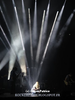 Le light-show lui aussi est magnifique et bien clair et les trois écrans géants en fond de scène diffuse des films et animations diverses mais pas de gros plans des musiciens ou de la belle, ce qui est un peu dommageable pour les personnes en fond de salle qui ne la verront qu'au format allumette. Le public semble bien apprécier notamment les quelques tubes d' Alanis, un public avec une proportion féminine supérieure à la moyenne des concerts Rock.