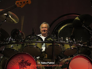 Après deux reports, NICK MASON, ancien batteur du Pink Floyd atterri enfin dans la capitale avec ses Saucerful of Secrets. Le concept n'a pas changé,jouer les morceaux du Floyd de la première période, époque Syd Barrett et un peu plus. Le concert n'affiche pas -complet- même si l'orchestre est plein, il reste des places libres aux balcons. Pas de première partie et un concert prévu pour 20h avec une entracte. Les lumières s'éteignent tout doucement alors qu'un décor Japonais, repris sur le merchandising, nous fait patienter de façon zen. 20h15 les musiciens font leur apparition sur les premières mesures de "One of these days". Les projections sont magnifiques et très psychédéliques, tout comme le light-show puissant et clair. Les musiciens, eux, sont toujours aussi mal habillés avec leurs chemises horribles à l'exception de Nick avec sa chemise blanche immaculée. Guy Pratt est d'humeur joyeuse multipliant les coups d’œil et les petites blagues. Rien à dire sur l'interprétation des morceaux, qui est parfaite. Nick Mason prend le temps de prendre le micro pour présenter les morceaux et les musiciens. Gary Kemp prend la plupart du chant avec l'aide de Guy Pratt. La setlist est un régal pour les amateurs des débuts du Floyd y compris pour certains titres plus obscures et un peu barrés.
