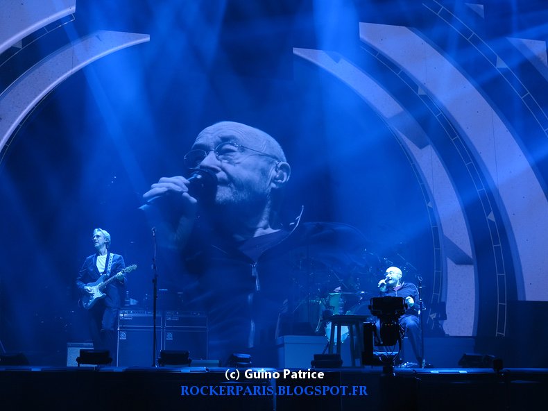 le groupe entre sur scène à 20h30 pétantes chacun prenant sa place doucement. Tous les regards se portent dur Phil Collins très diminué qui va s’asseoir et qui ne bougera plus de la soirée ( sauf une petite escapade en arrière de scène pendant «Home by the sea»).